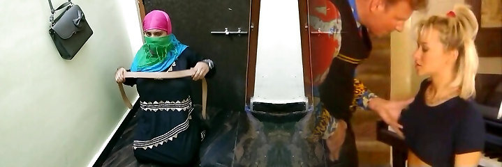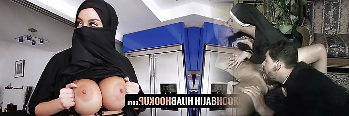 Sexy arab beauty with large milk cans and ass approaches a shy guy and asks him for a wild pounding