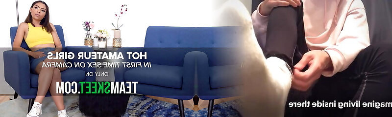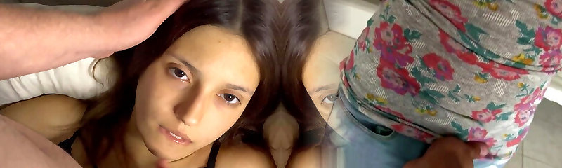 My shy and guiltless teenie stepsister doesn't know how to get cum and she practices with my big cock