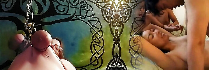 Quirky sexy fun hippy stepmom plays with her mammories and belly whilst exercising on a static bike