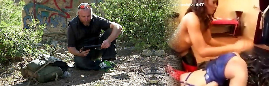 Tatted insane girl in high heels rails humungous chisel outdoors