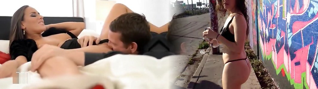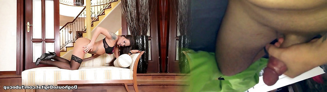 Playful dark haired floozie with huge knockers likes to grope her labia before well dangled man tears up her doggystyle