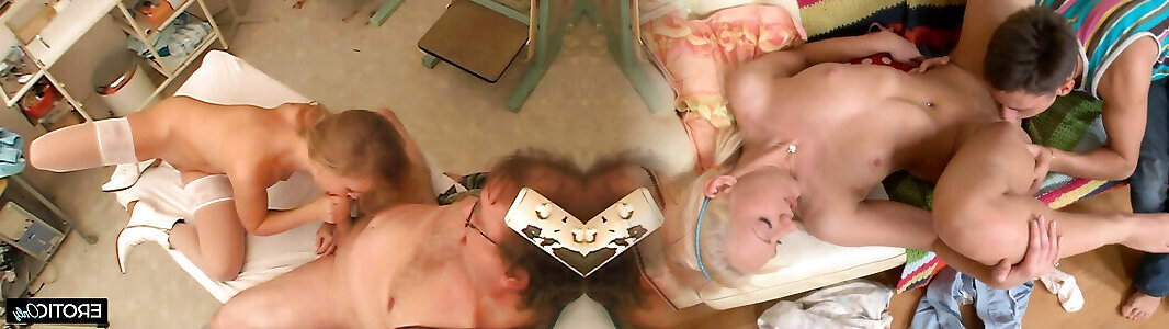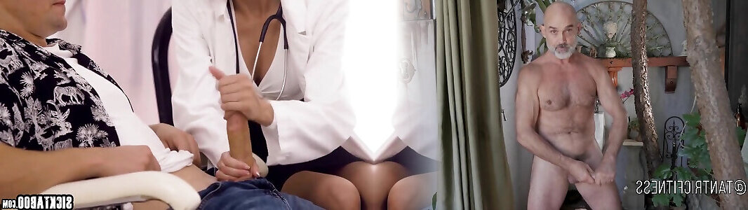 Two spectacular busty cougars clothed up as nurses have a stiff core 3 way at the doctors office