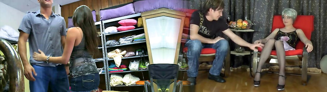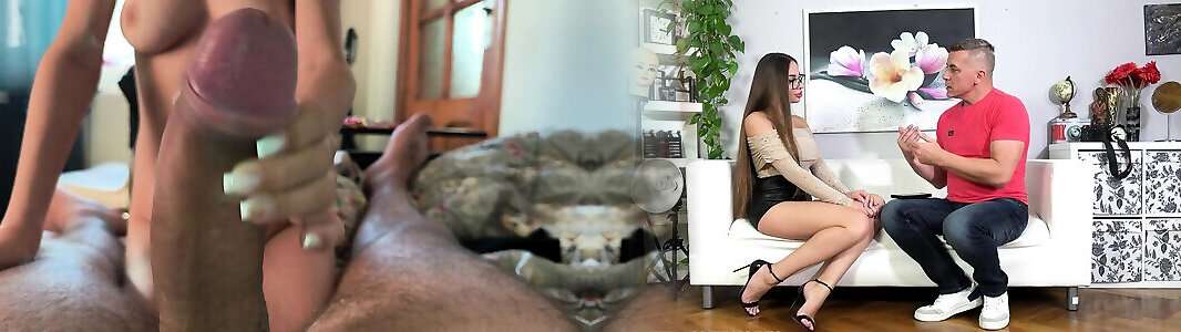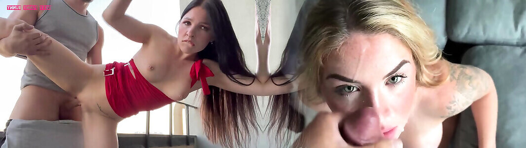 Step sister makes sexy moves in front of stepbrother and rubs her perfect pussy against the huge dick