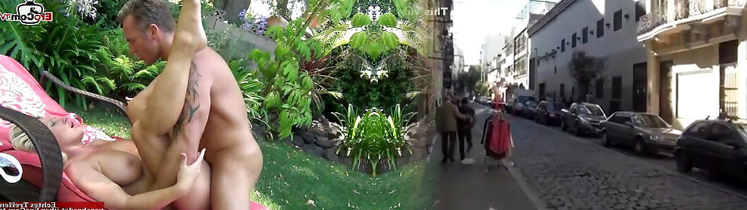 A girl cheats on her boyfriend with a neighbor on the balcony and gets sperm on her face and body