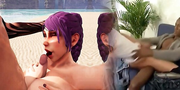 FreshWomen - Busty Young Babe With A Big Ass Rides A Big Cock By The Pool And Swallows Cum - 3D Animated Porn Game - 4