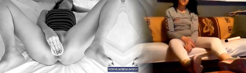 Hairy Pussy Hot Tight Brunette Catches Beau Masturbating and tries to Help Him Cum Quick by Massaging his Dick