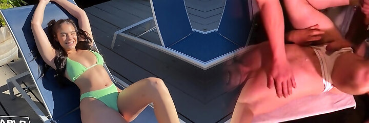 Slim Teenie Latina Beauty Gets Facialized After Hot Sex In the Outdoor Swimming Pool