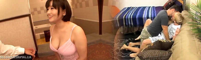 Horny Asian slut, Miho Ichiki, demonstrates her huge jugs and shrieks while getting a internal cumshot from 2 super-naughty men - real JAV threesome!