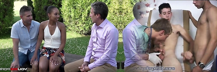 German skinny college teen at creampie gangbang with handballing