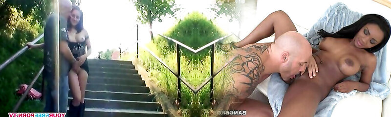 Real outdoor romp picnic with a torrid petite black-haired on a summer vacation in nature next to the road